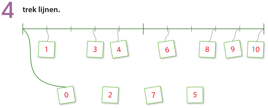 4. Getallen t/m 10 op de getallenlijn plaatsen.